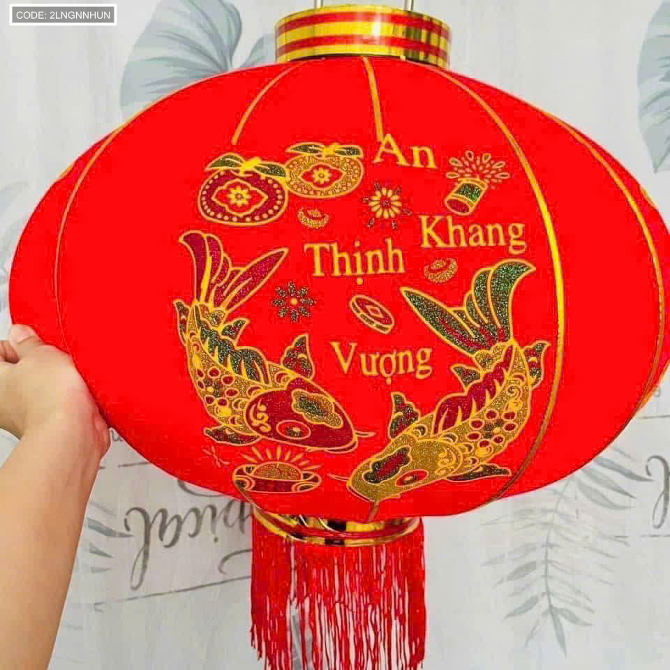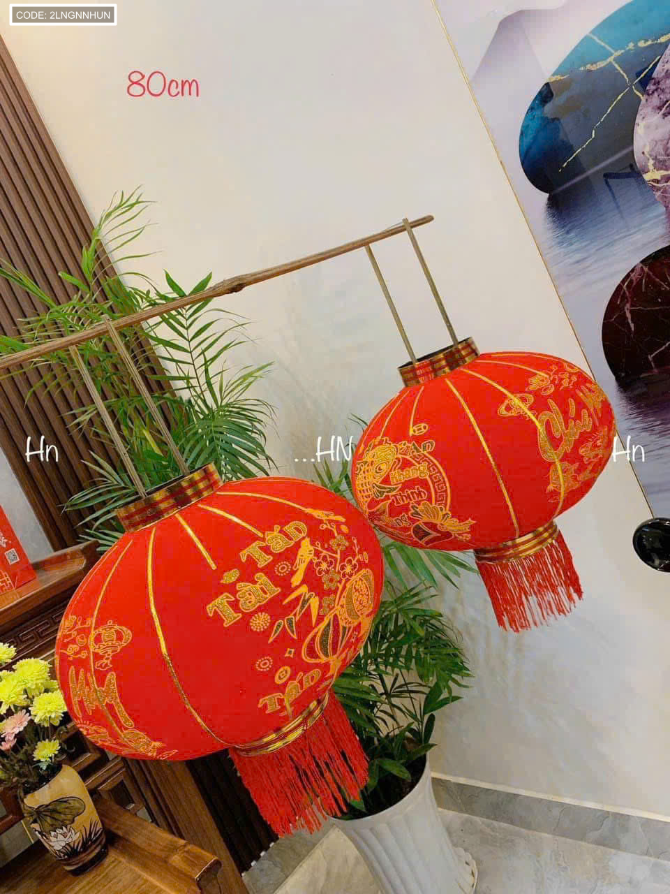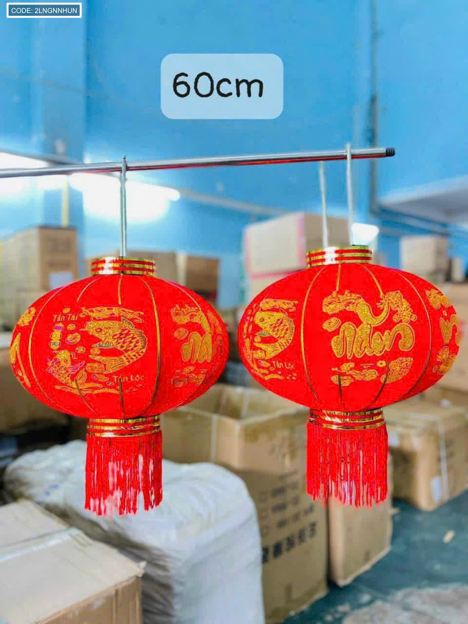 2 LỒNG ĐÈN NHUNG KẺ TẾT 60CM(Giá 2 cái)