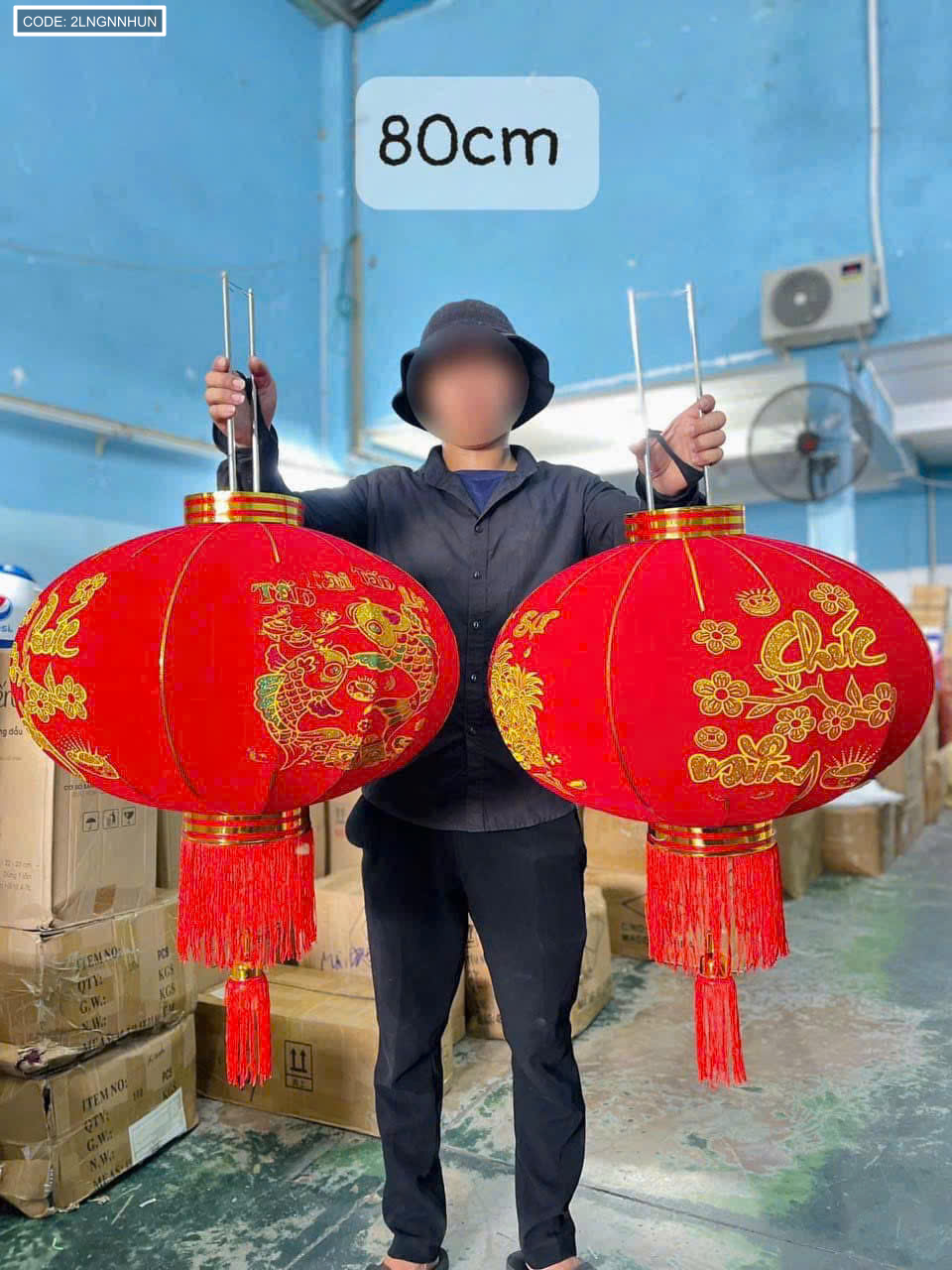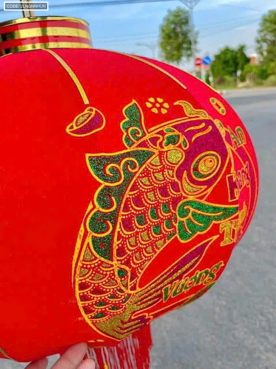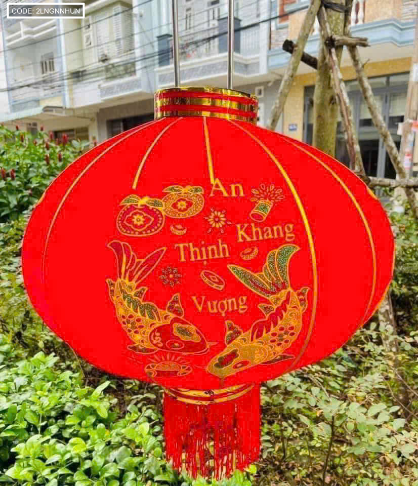 2 LỒNG ĐÈN NHUNG KẺ TẾT 60CM(Giá 2 cái)