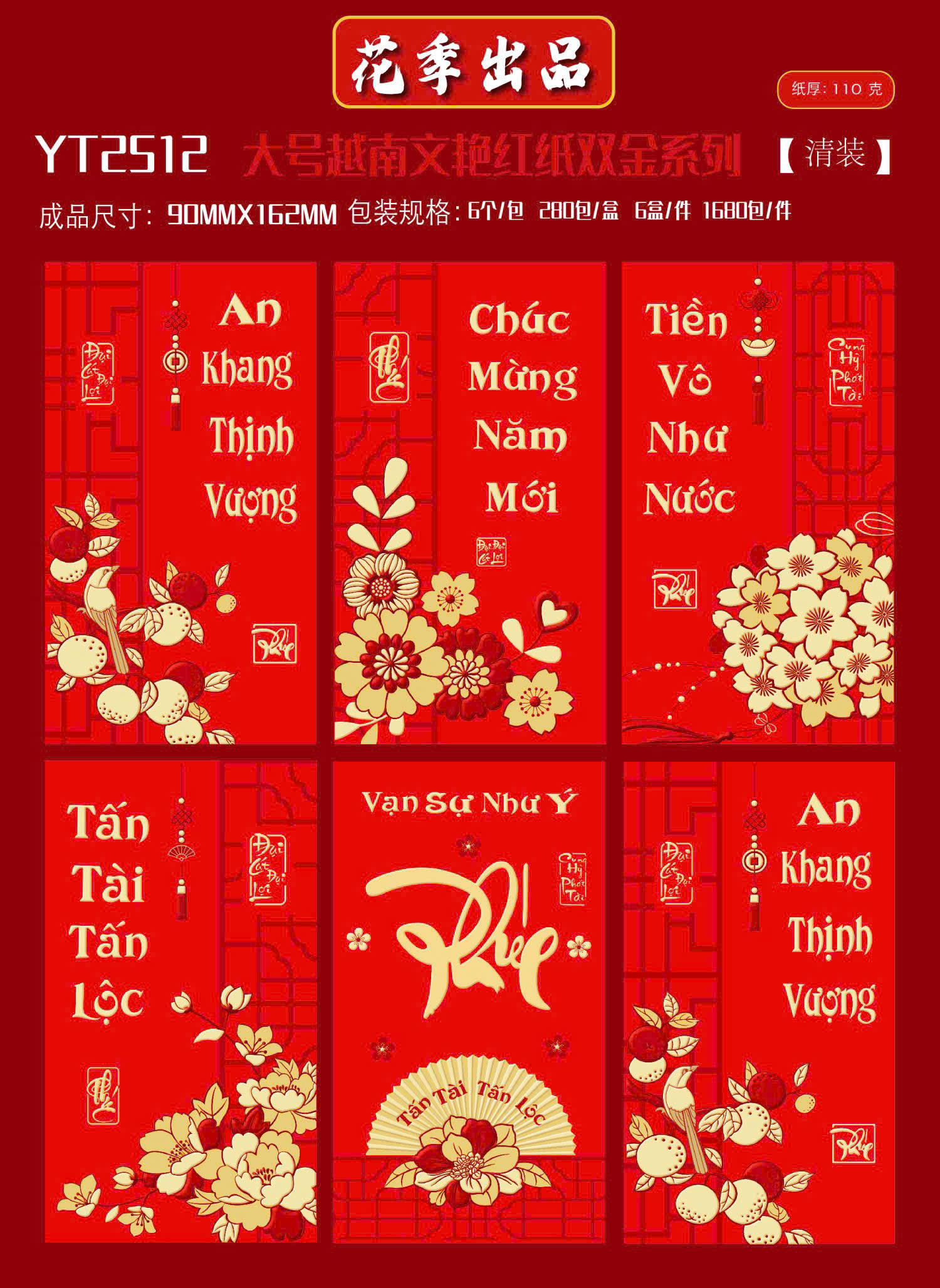 60 BAO LÌ XÌ NHUNG BẢN TO( CHỌN ĐƯỢC 6 HÌNH – 1 HÌNH 6 CÁI) nhiều hình