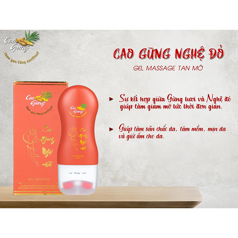 CÔNG DỤNG: CAO GỪNG chiết xuất 100% gừng tươi được tinh chế theo quy trình công nghệ truyền thống kết hợp hiện đại và hỗn hợp tinh nghệ, tiêu hồng Pháp có công dụng làm thon gọn nhanh chóng và hỗ trợ làm mờ các vết rạn trên da. CAO GỪNG kết hợp các dẫn xuất Vitamin E, B3, C từ tự nhiên. Sẽ thúc đẩy quá trình giải phóng các tế bào cải thiện, loại bỏ tình trạng vùng da sần vỏ cam, giúp vùng da bụng, hông đùi, cánh tay, cằm săn chắc mịn màng. Hiệu quả rõ ràng sau 15 ngày sử dụng có thể giảm từ 3 – 5cm tùy cơ địa và cách kết hợp. Hiệu quả cao cho phụ nữ sau khi sinh.