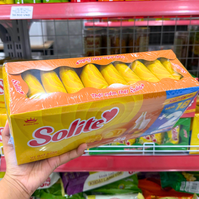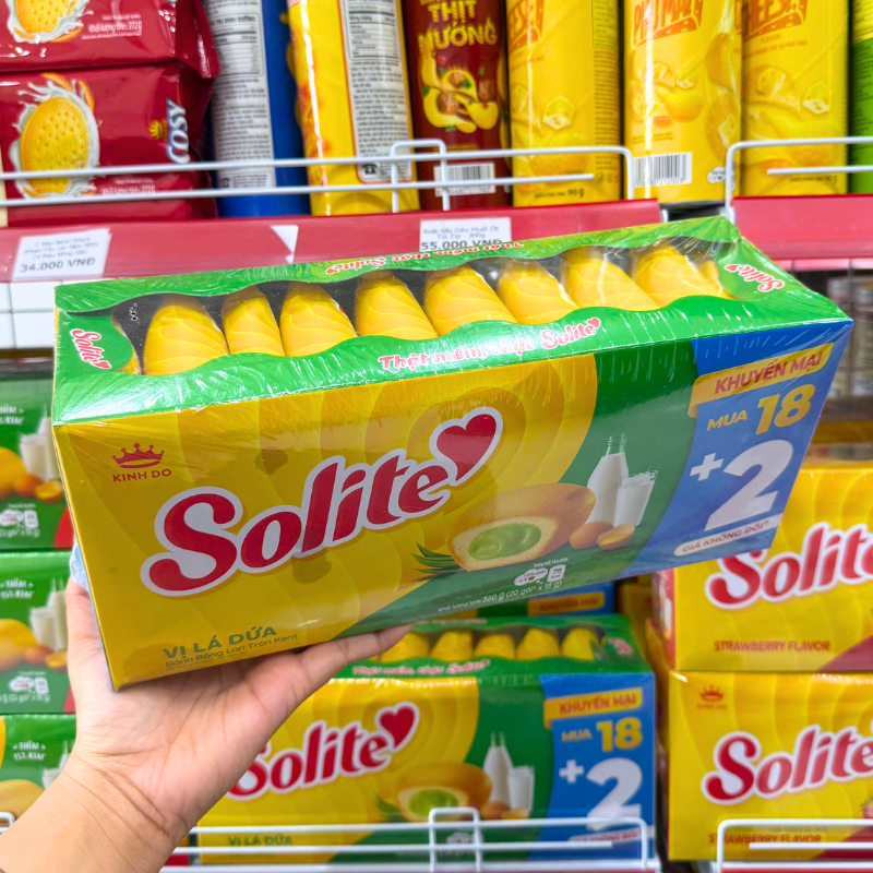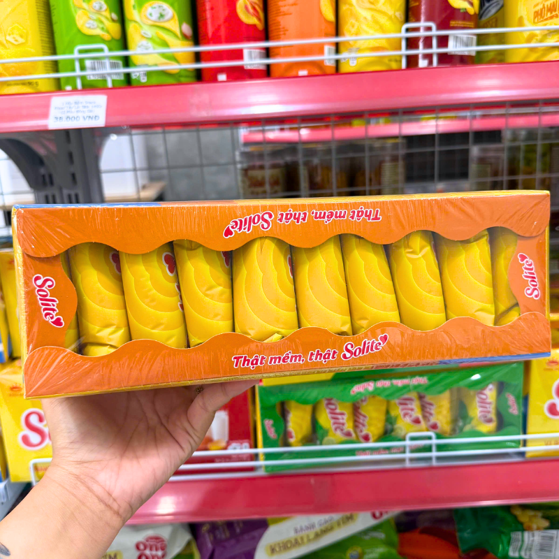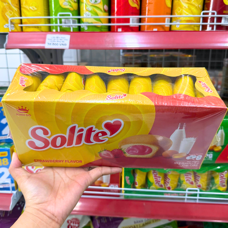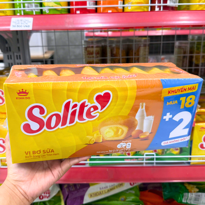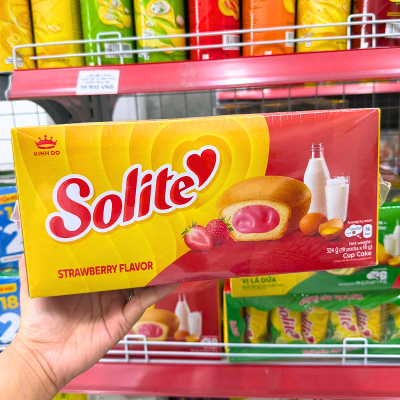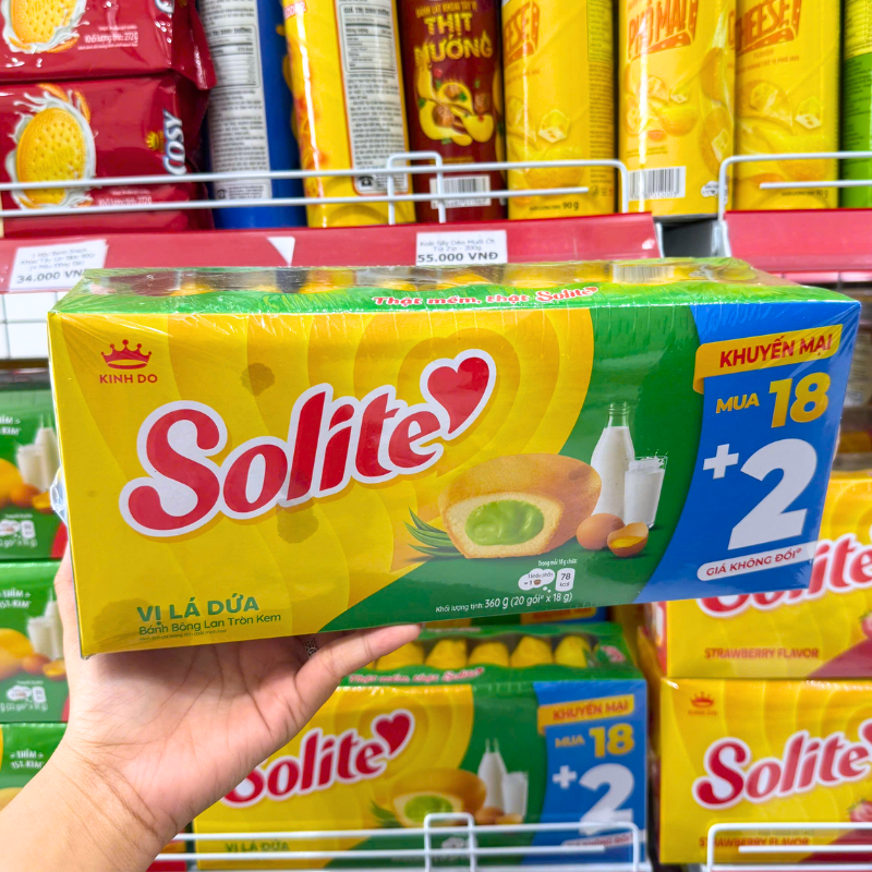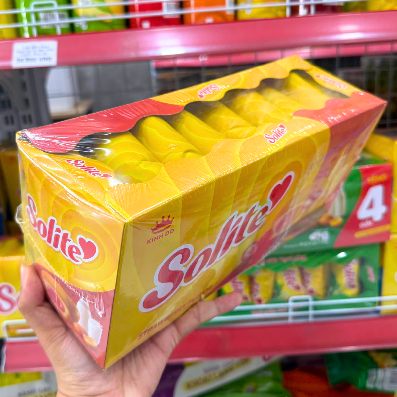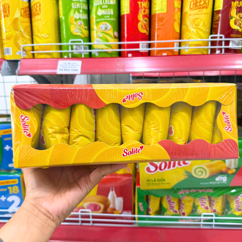 Bánh Bông Lan Cuộn Kem Solite 3 Vị (Lá Dứa, Bơ Sữa, Dâu) – Hộp 360g