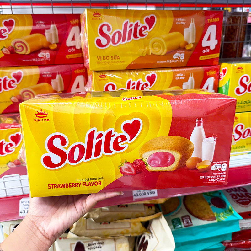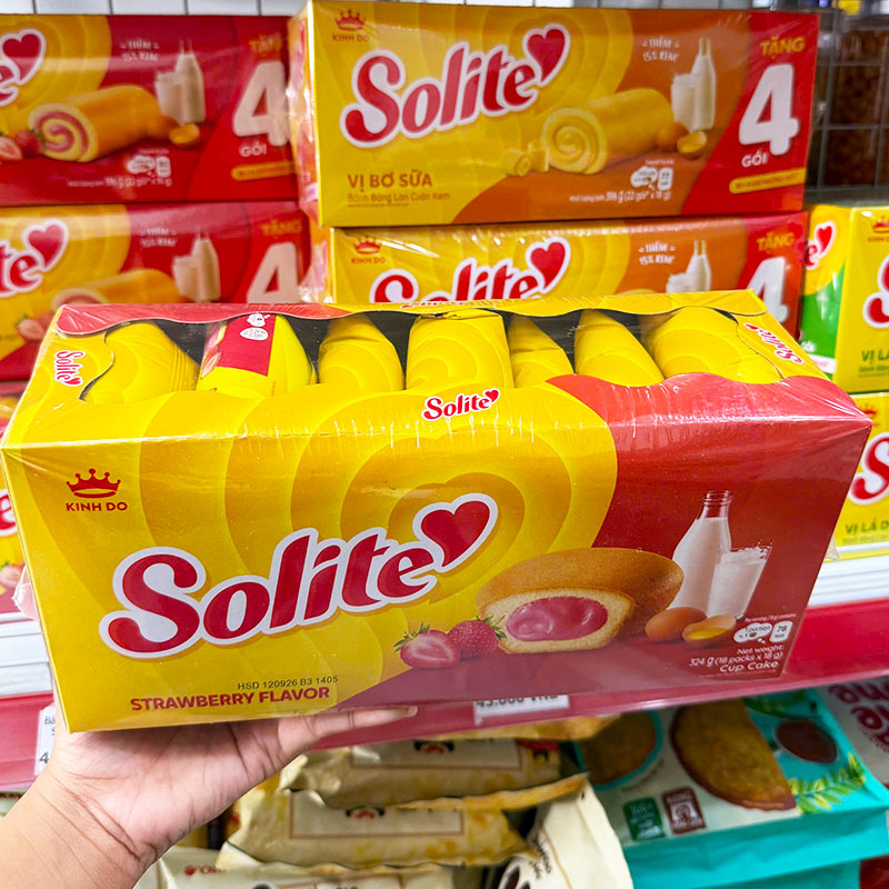 Bánh Bông Lan Tròn Nhân Kem Dâu Solite 324g