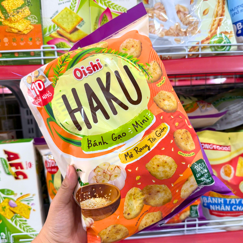Bánh Gạo Mini Oishi Haku Mè Rang Tỏi Giòn 150g