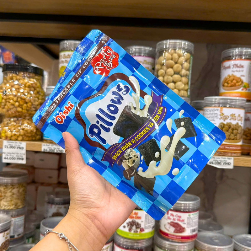 Bánh Quy Nhân Kem Socola OISHI PILLOWS Vị Cookies Vani 80g