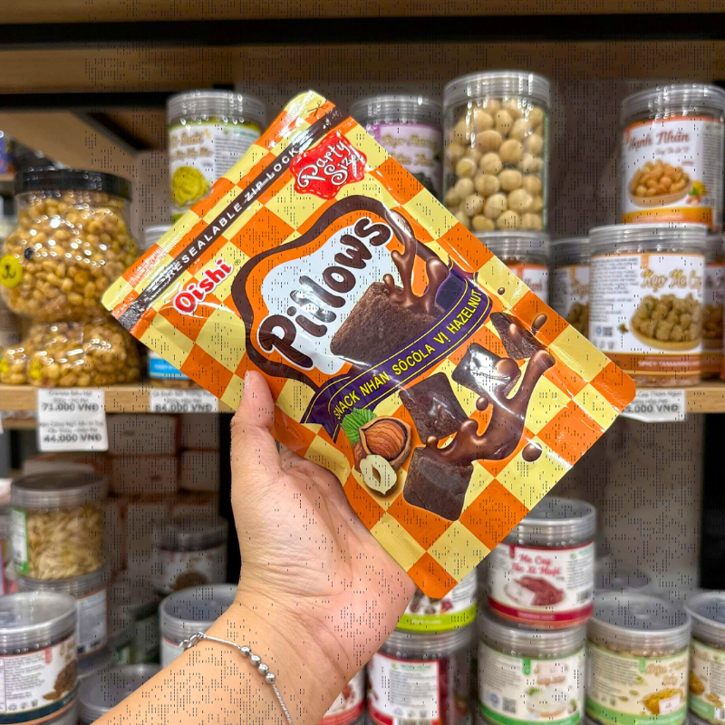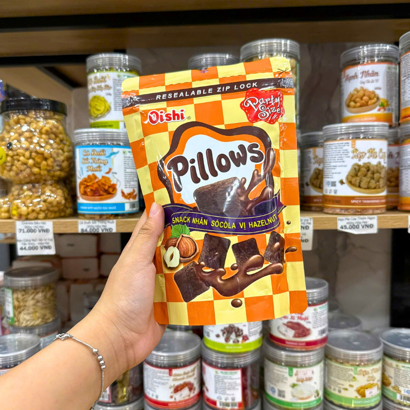Bánh Quy Nhân Kem Socola OISHI PILLOWS Vị Hazelnut 80g