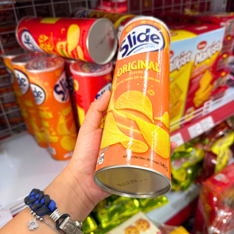 Bánh Snack Khoai Tây Lát Slide Vị Nguyên Bản – Bánh Slide Khoai Tây Màu Cam 145Gr (Hộp To)
