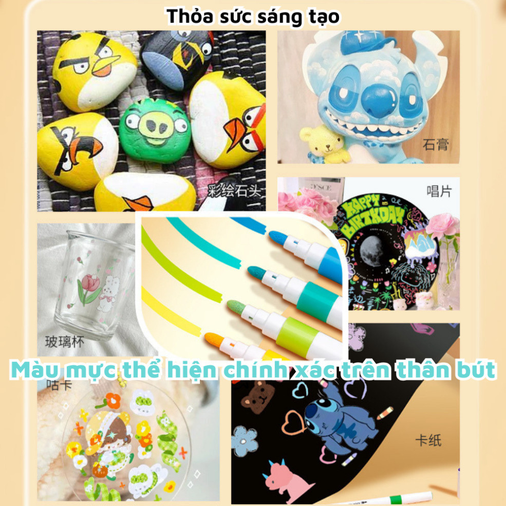 – Phù hợp cho nhiều chất liệu: Bút Màu Acrylic Marker có khả năng vẽ trên nhiều chất liệu khác nhau như giấy, gỗ, da, vải, gốm sứ và nhiều chất liệu khác. Điều này giúp bạn thể hiện sự sáng tạo trên nhiều bề mặt.