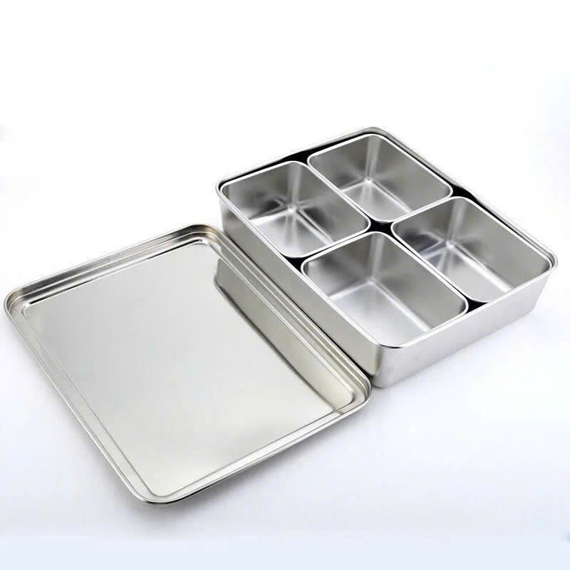 Bộ Khay Gia Vị – Khay Đựng Topping Trà Sữa Inox 304 4 Ngăn Có Nắp Đậy 30x23x6cm
