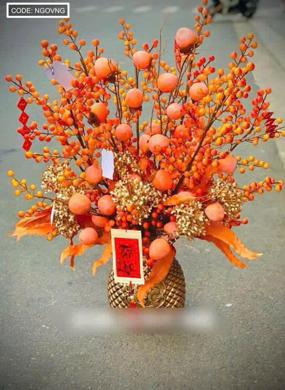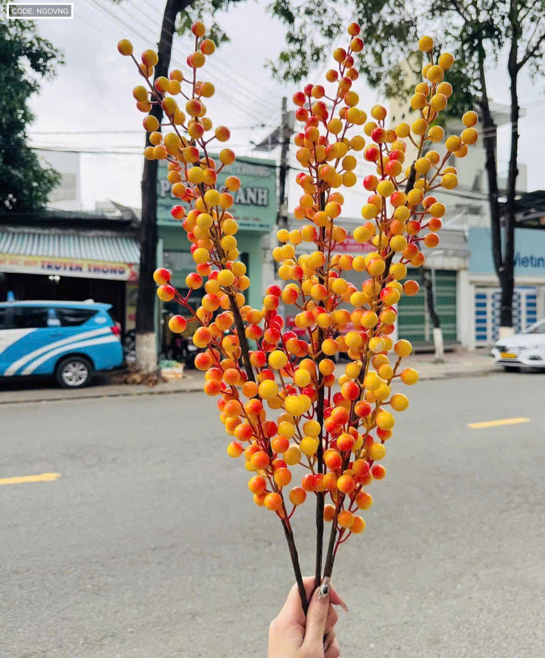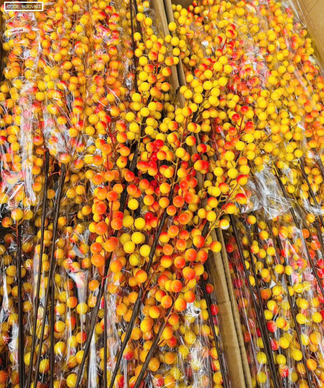 Cành Đông Đào 12 Nhánh Trái Mọng Vàng Dài 90cm