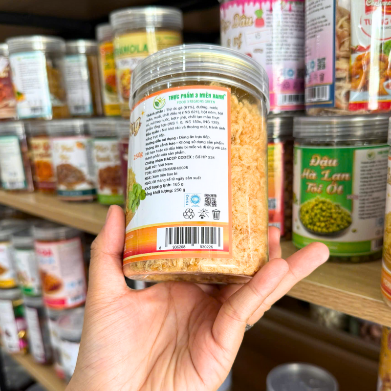 Thành phần : thịt heo 80%, đường, muối, ớt , chất điều vị E621