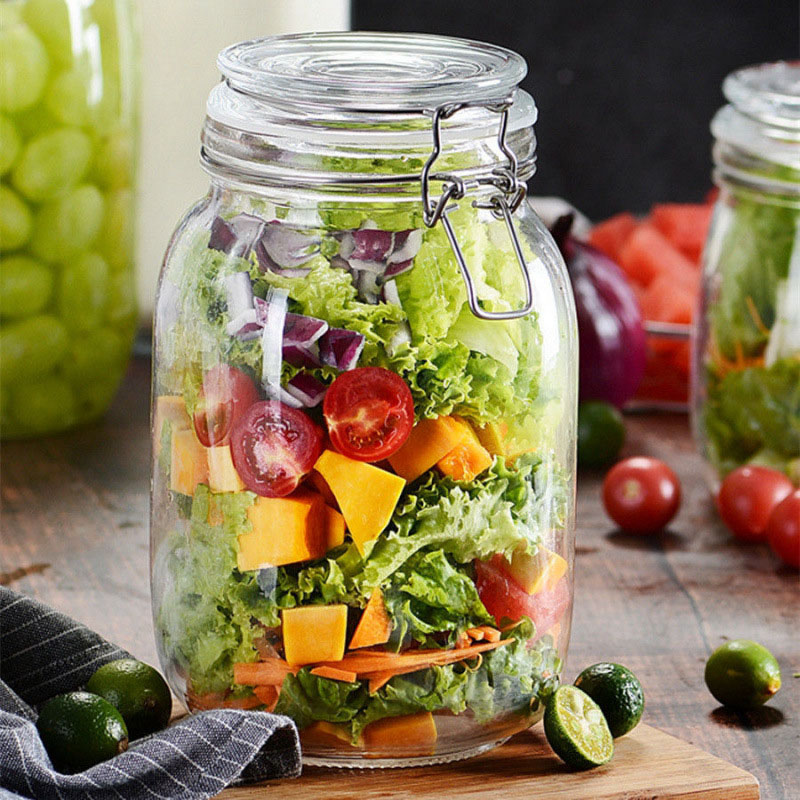 Combo 2 Hũ Thủy Tinh Tròn Nắp Cài Đựng Thực Phẩm – Lọ Thủy Tinh Đựng Đồ Khô 1200ml