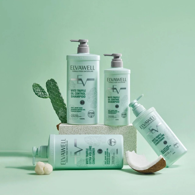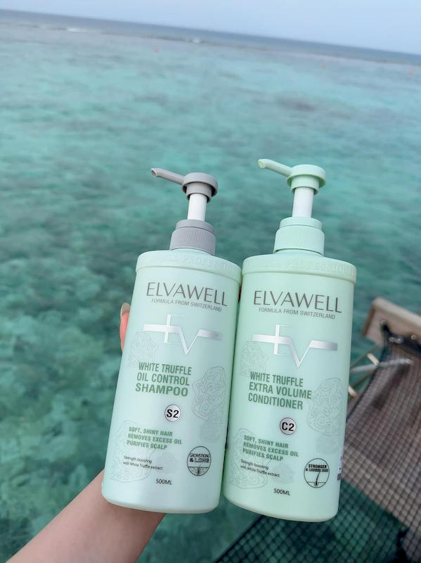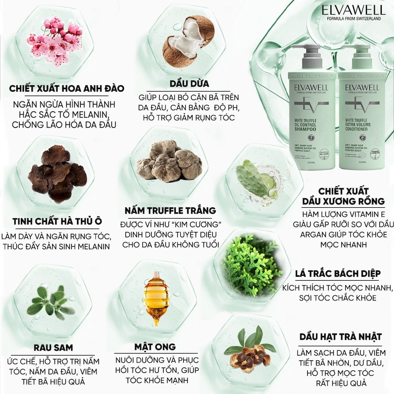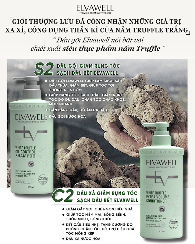 Combo Dầu Gội Xả Elvawell Màu Xanh Nấm Truffle 1000ml Hỗ Trợ Tóc Sạch Dầu Bết