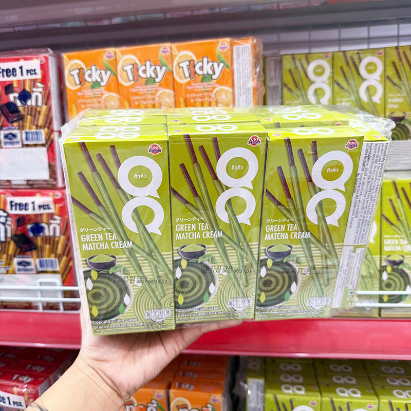 Giá sỉ bánh Que Đũa Phủ Trà Xanh Ticky Uni Firms Lốc 13 Hộp – Màu Xanh Lá