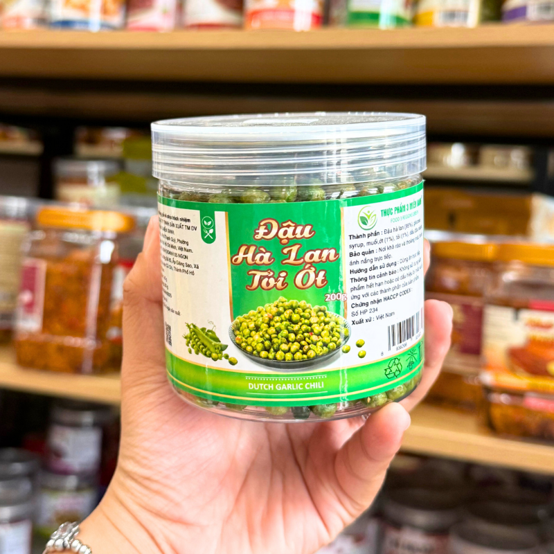 Giá sỉ đậu Hà Lan Tỏi Ớt Mini Thơm Ngon 200g – Hộp Pet