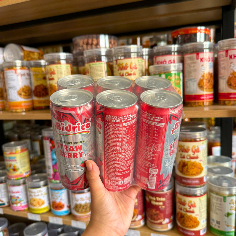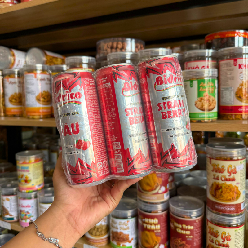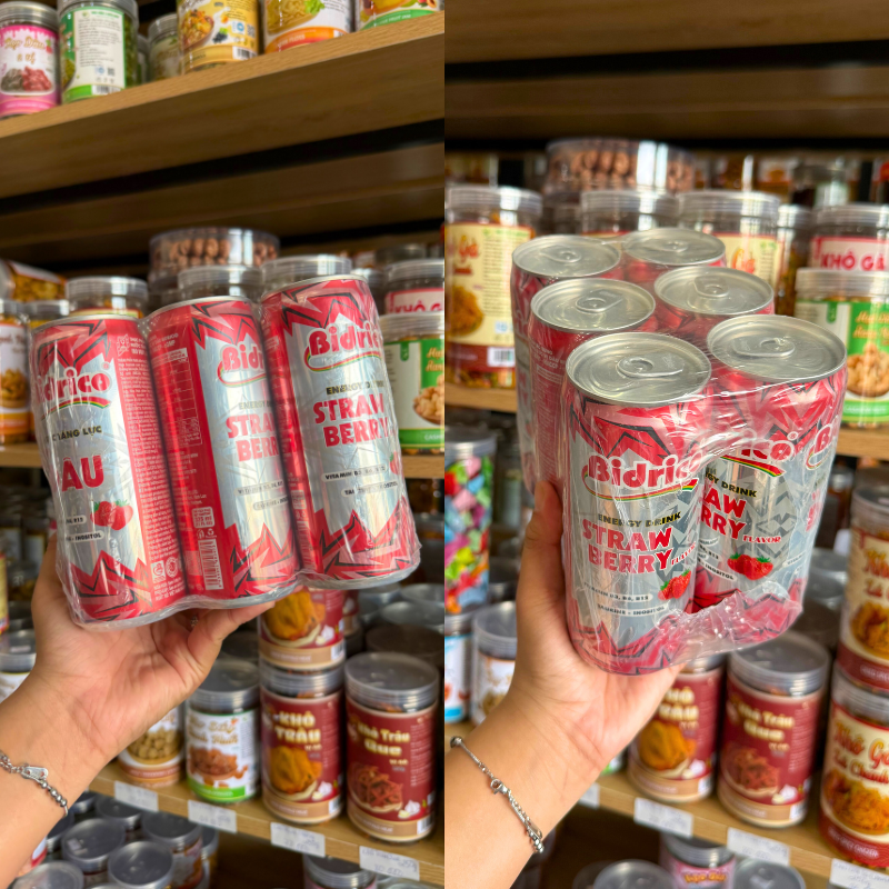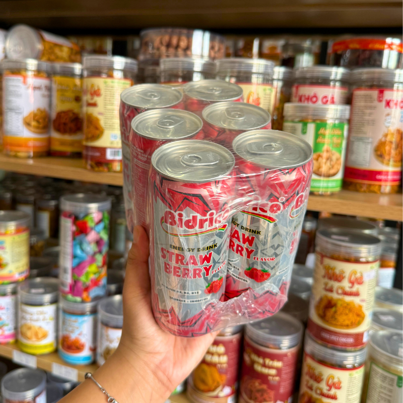 Giá sỉ set 6 Lon Nước Tăng Lực Bidrico Vị Dâu – Nước Ngọt Bidrico Dâu (325ml/Lon)