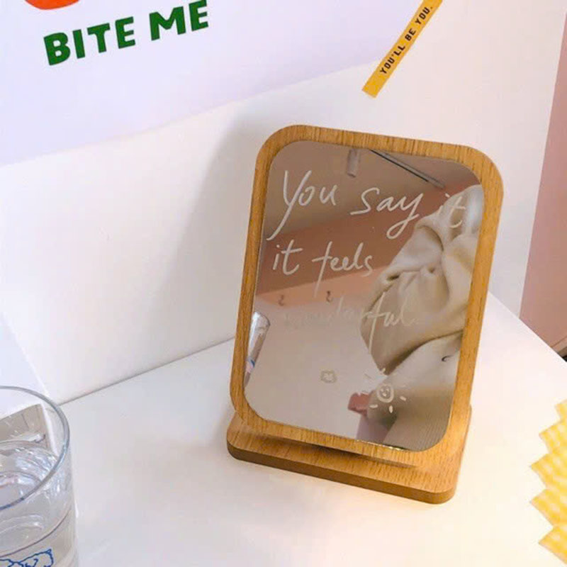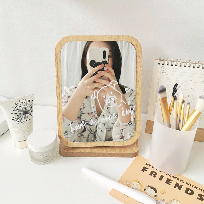 Gương Gỗ Để Bàn – Giương Trang Điểm Để Bàn – Gương Gỗ – Khớp Xoay 180 Độ 19x16cm