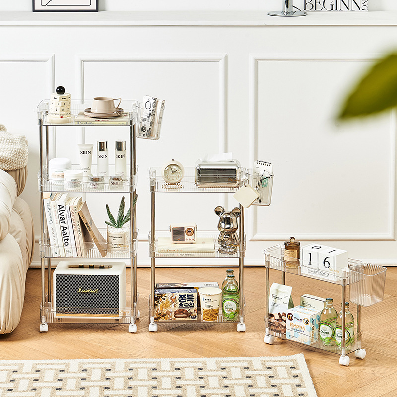 Kệ Để Đồ – Kệ 3 Tầng – Kệ Bếp – Kệ Nhựa Trong Suốt Có Bánh Xe 67x23x35cm