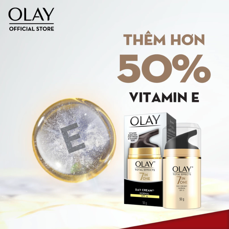OLAY TOTAL EFFECTS DAY CREAM SPF15 – dòng kem dưỡng da ban ngày đình đám, giúp phục hồi và làm chậm 7 dấu hiệu lão hóa. Công thức chứa Niacinamide (Vitamin B3) kết hợp cùng Vitamin E, Vitamin B5 và các dưỡng chất chống oxy hóa, mang đến cho bạn làn da sáng khỏe, rạng rỡ mỗi ngày.