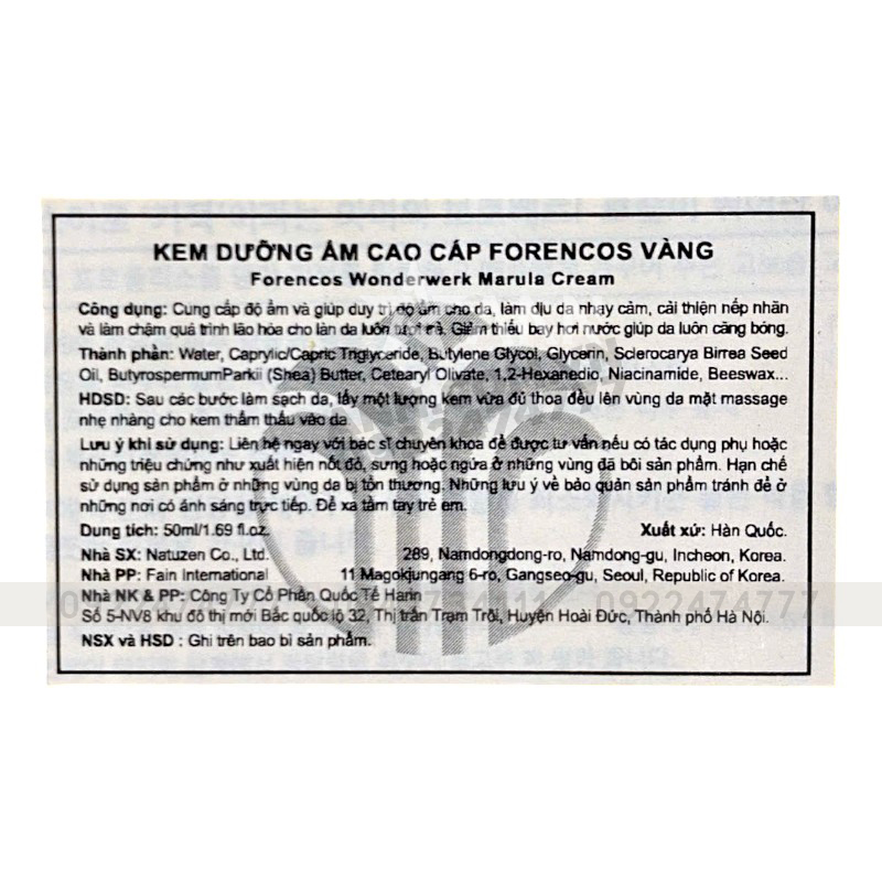 Kem Dưỡng Forencos Màu Vàng Wonderwerk Marula Cream 50ml