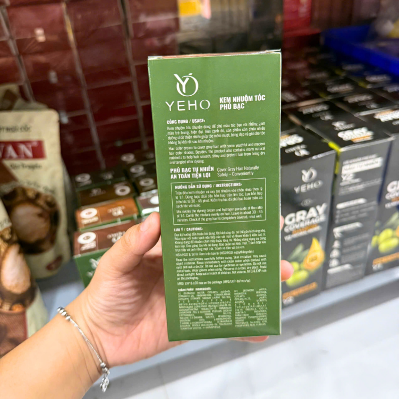 Nếu bạn đang cần một giải pháp tiện tại nhà, lên màu nâu hạt dẻ tự nhiên, che phủ tóc bạc gọn gàng mà vẫn giữ tóc trông mềm mượt thì YEHO C5 là lựa chọn rất đáng thử. Set gồm kem nhuộm + oxy trợ nhuộm, thao tác đơn giản, phù hợp cho người bận rộn nhưng vẫn muốn tóc nhìn trẻ trung, chỉn chu.