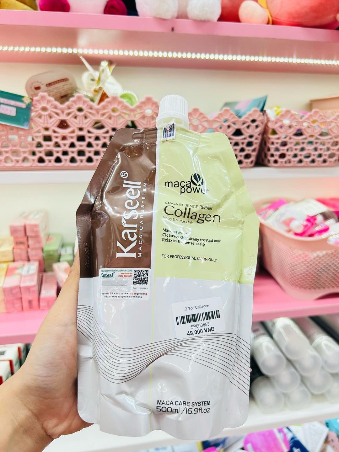 – Tại salon: Hấp tóc Collagen karseell được dùng để hấp dầu 15-20 phút bằng máy Ozon, hoặc kết hợp máy phun Nano làm dịch vụ phủ lụa collagen, pha vào thuốc uốn duỗi nhuộm tăng độ mềm bóng mượt.