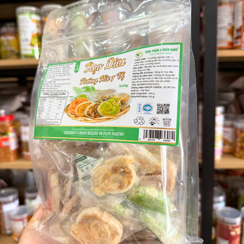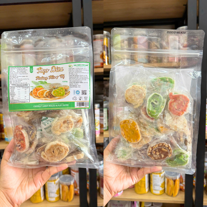 Kẹo Dừa Nướng Mix 7 Vị 500g – Túi Zip Trong