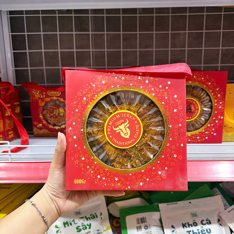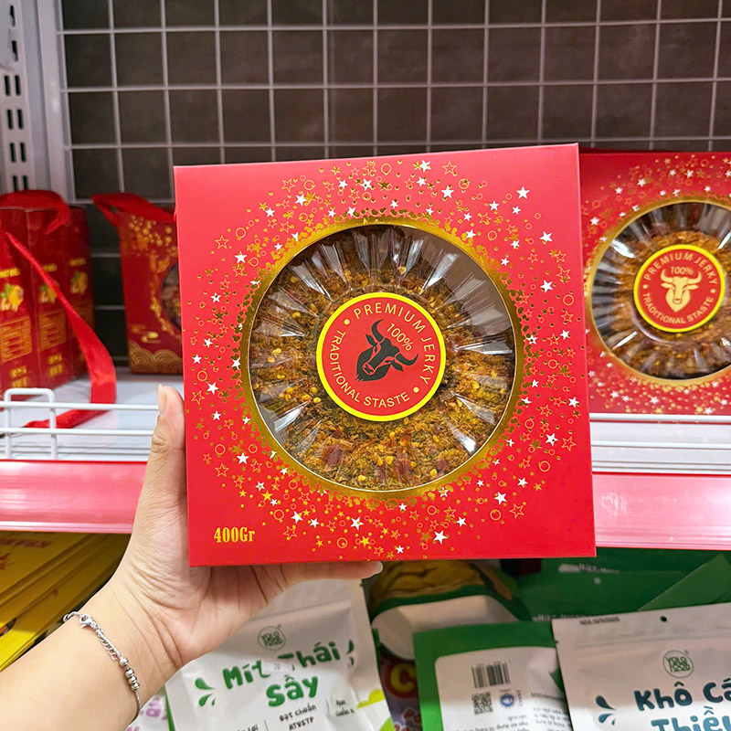 Khô Bò Miếng Úc Đầu Bò Vàng Đen 400g Mẫu Mới – Hộp Quà Tết