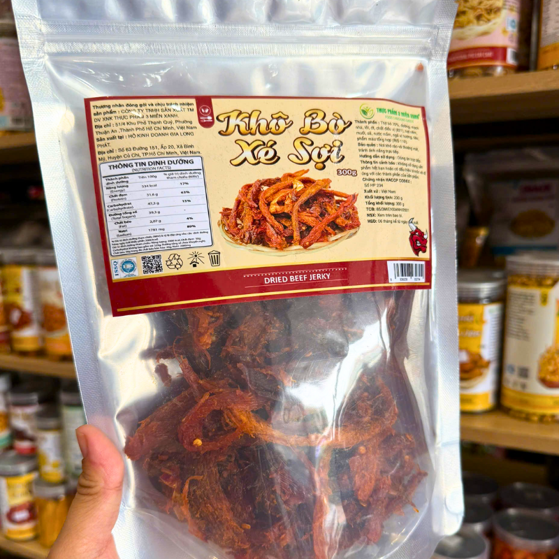 Khô Bò Xé Sợi Thượng Hạng 300g – Túi Zip Bạc