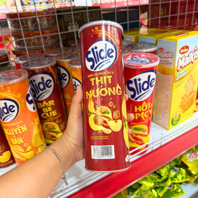 Kho sỉ bánh Snack Khoai Tây Lát Slide Vị Thịt Nướng – Bánh Slide Khoai Tây Màu Nâu 145Gr (Hộp To)