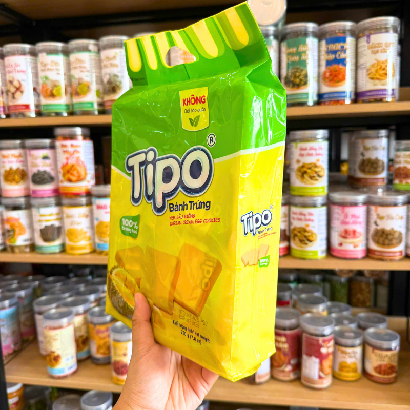 Kho sỉ bánh Trứng Tipo Kem Sầu Riêng, Trứng – Bánh Tipo Gói Lớn 220g