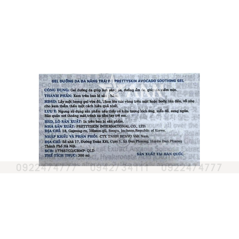 Kho sỉ gel Dưỡng Da Đa Năng Prettyskin Chiết Xuất Bơ Avocado Soothing Gel 300ml