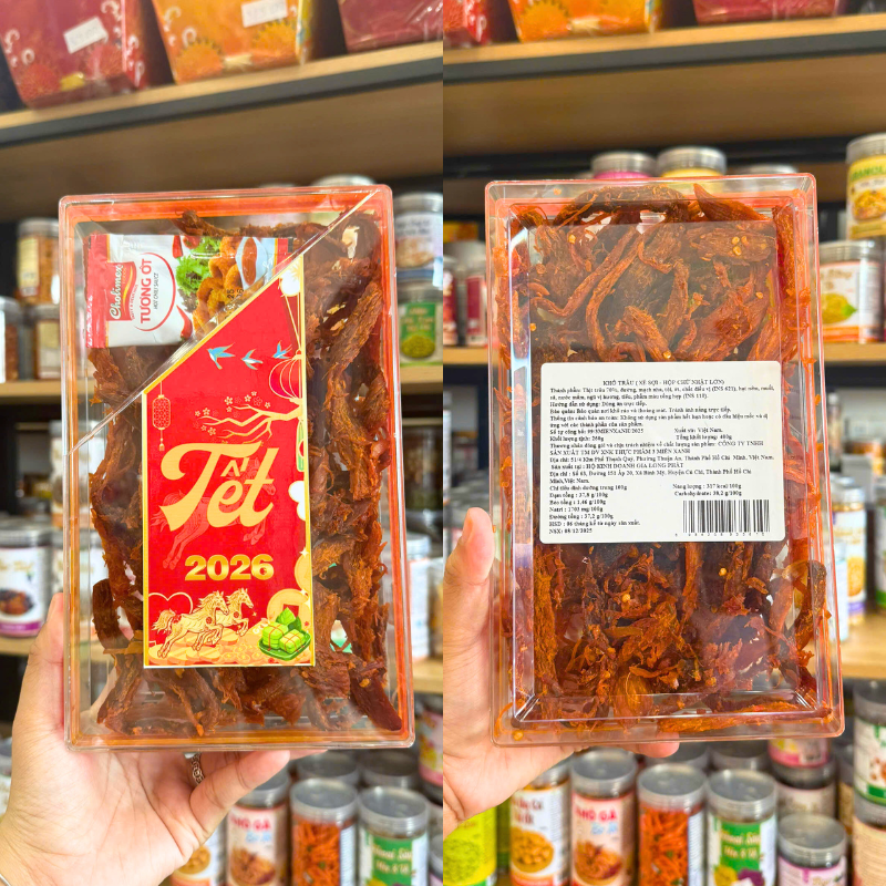 Kho sỉ khô Trâu Xé Sợi Tẩm Vị Bò Thơm Ngon 400g – Hộp Chữ Nhật Lớn