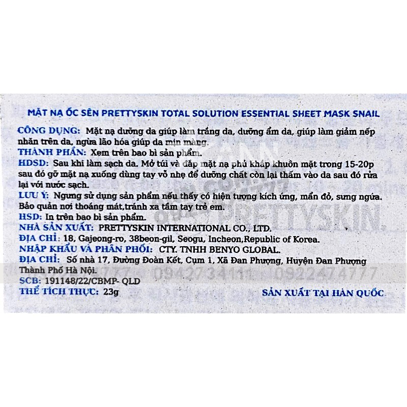 Kho sỉ mặt Nạ Ốc Sên Prettyskin Total Solution Essential Sheet Mask Snail – Hộp 10 Miếng