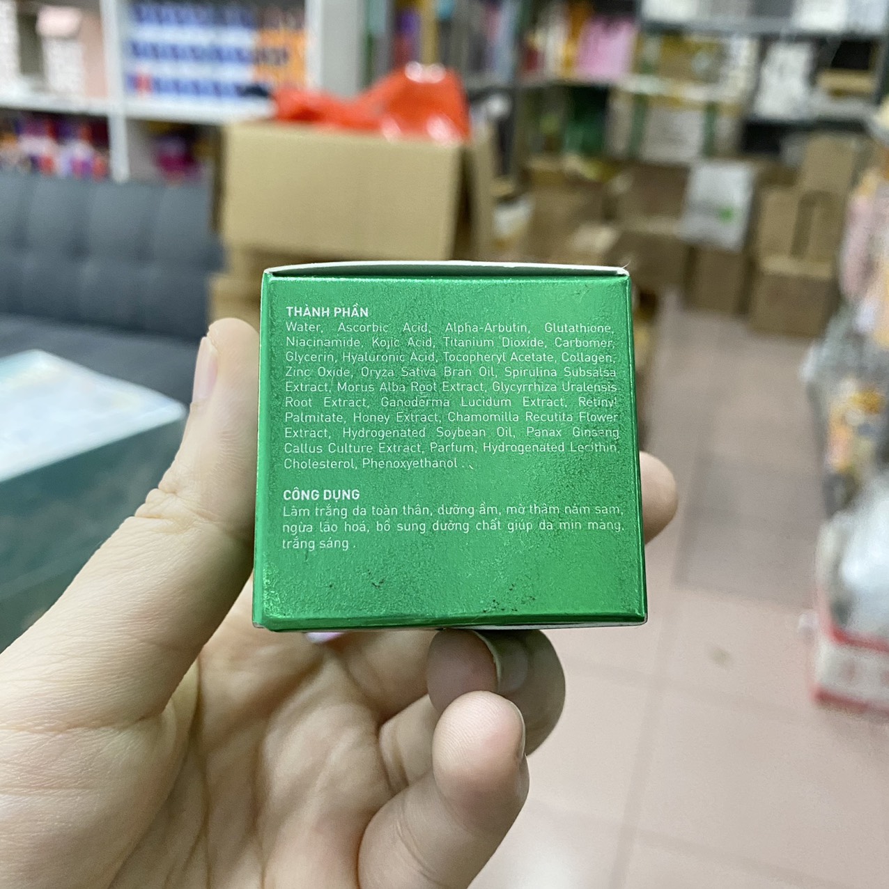 CÔNG DỤNG: Làm trắng da toàn thân, dưỡng ẩm, mờ thâm nám sạm, ngừa lão hóa, bổ sung dưỡng chất giúp da mịn màng, trắng sáng