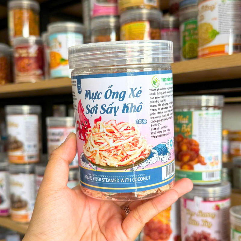 Mực Ống Xé Sợi Sấy Khô – Mực Sợi Dừa Thơm Ngon 200g – Hũ Pet