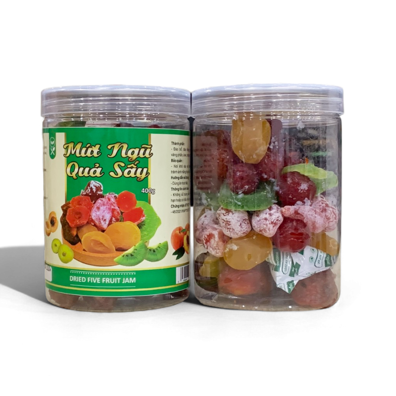 Thành Phần Ngũ Quả Sấy Dẻo :  Đào Hồng Phấn , Đào Vàng Phấn, Đào Bổ, Mận Cơm, Kiwi
