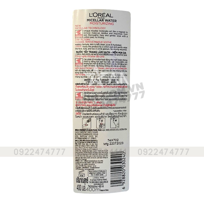 Nước Tẩy Trang L’oreal Paris Màu Hồng Micellar Water Moisturing 400ml