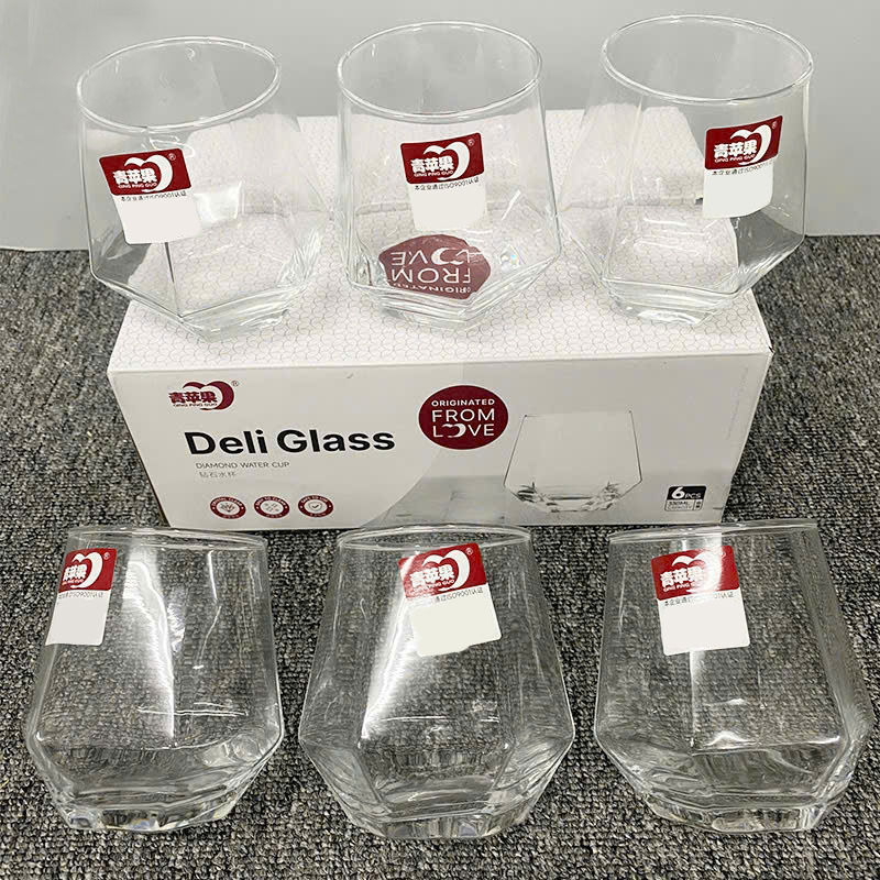 Sỉ bộ 6 Cốc Thủy Tinh Đế Lục Giác Sang Trong – Ly Thủy Tinh 330ml 6.7×9.2cm