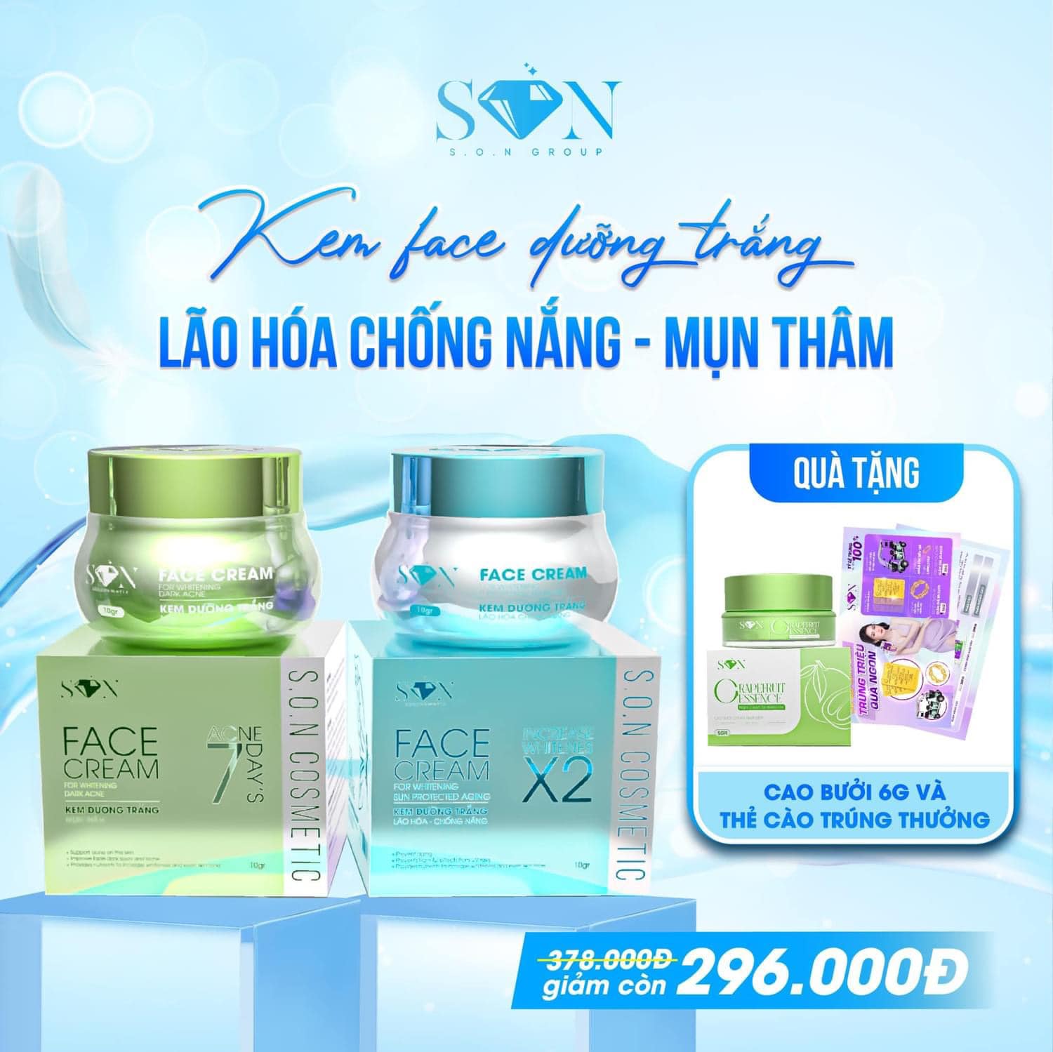 Sỉ combo Kem Face Hỗ Trợ Giảm Mụn Xanh Lá + Xanh Biển SON Cosmetic Tặng Cao Bưởi Phiên Bản Mới