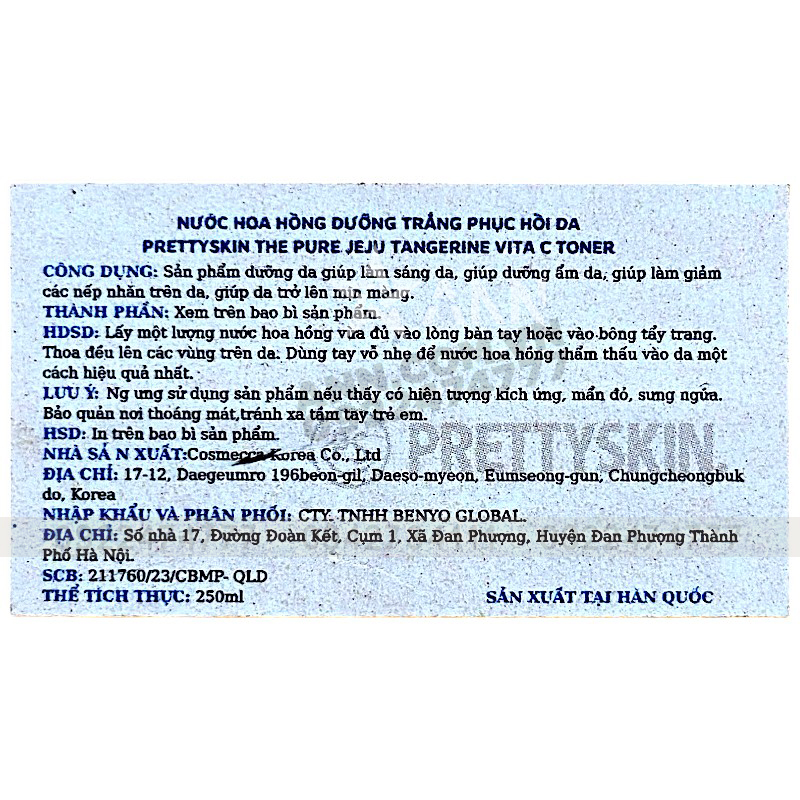 Sỉ nước Hoa Hồng Prettyskin The Pure Jeju Tangerine Vita C Toner 250ml