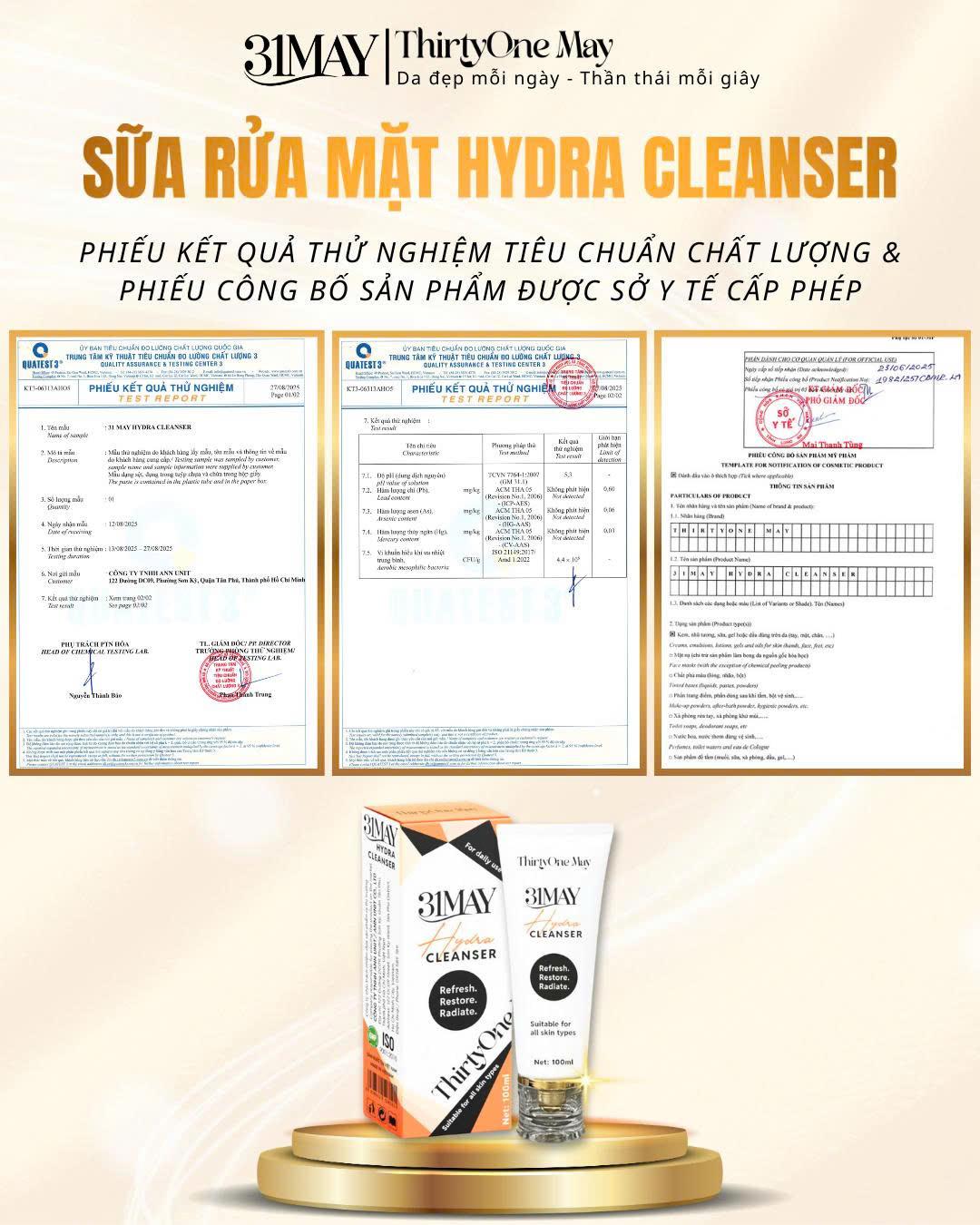 💧 SỮA RỬA MẶT 31MAY HYDRA CLEANSER – SẠCH SÂU DỊU NHẸ, DƯỠNG ẨM CĂNG MƯỚT 💧