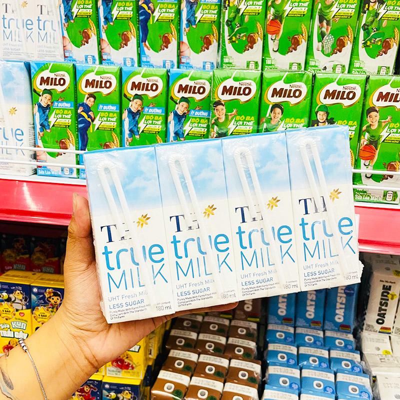Sữa Tươi Tiệt Trùng Ít Đường TH True Milk Lốc 4 Hộp Lớn (180ml/Hộp)