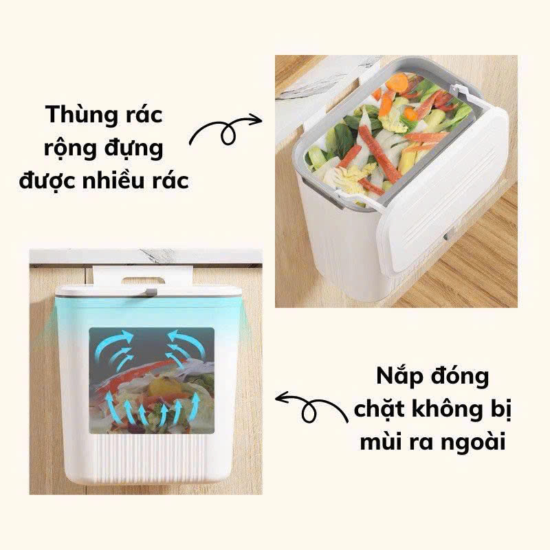 ✔️Thiết kế có nắp đậy giúp không có mùi hôi và con côn trùnġ bay vào rác giúp phòng bếp luôn sạch sẽ